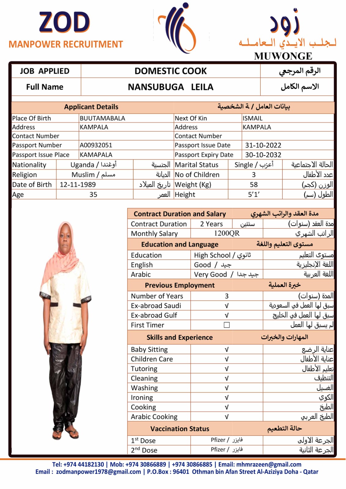 الاسم - عربي NANSUBUGA LEILA