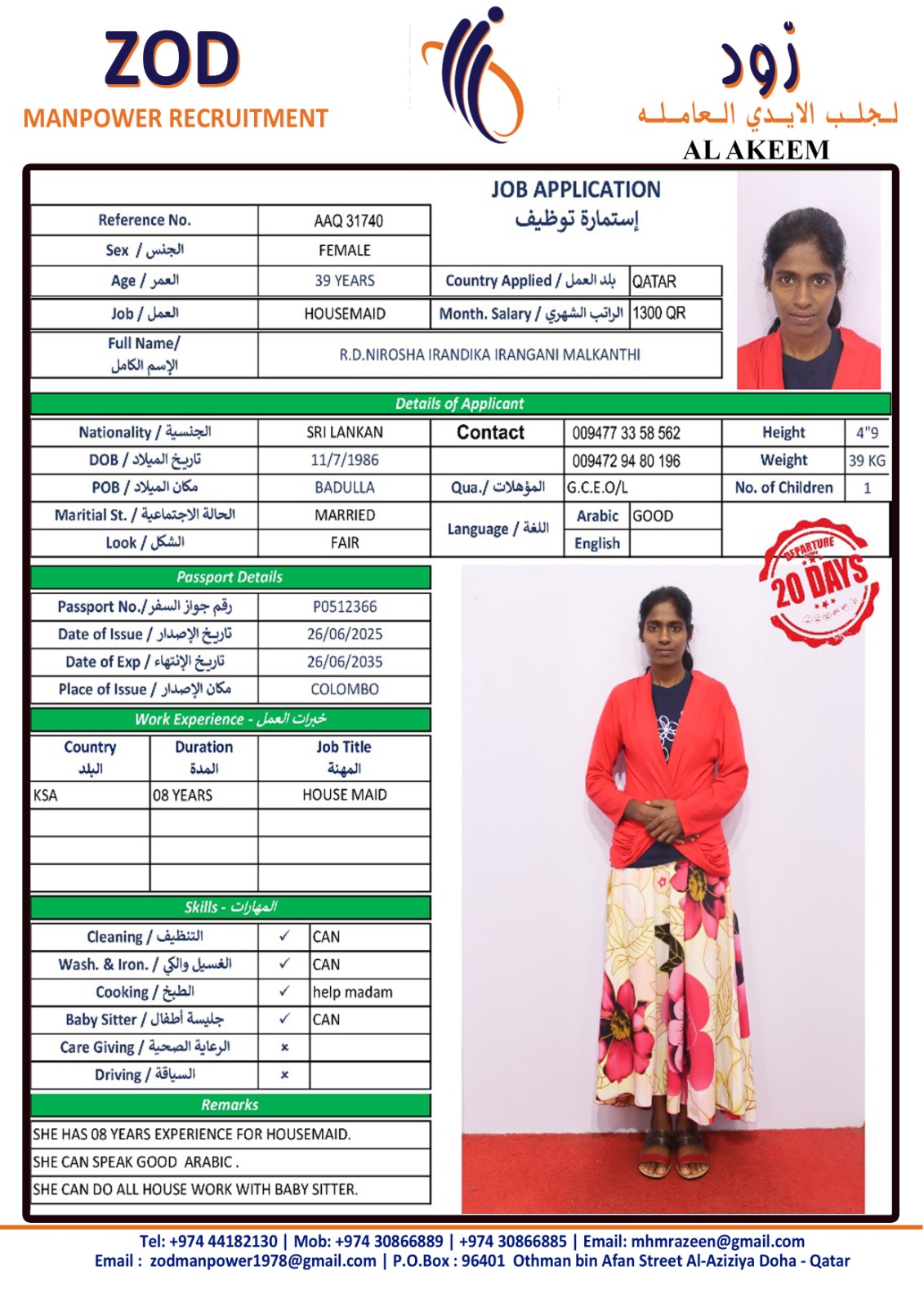 الاسم - عربي R.D.NIROSHA IRANDIKA IRANGANI MALKANTHI