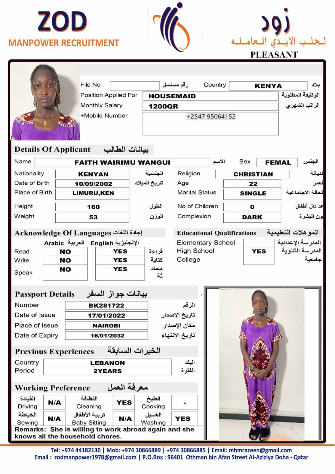 الاسم - عربي FAITH WAIRIMU WANGUI 1
