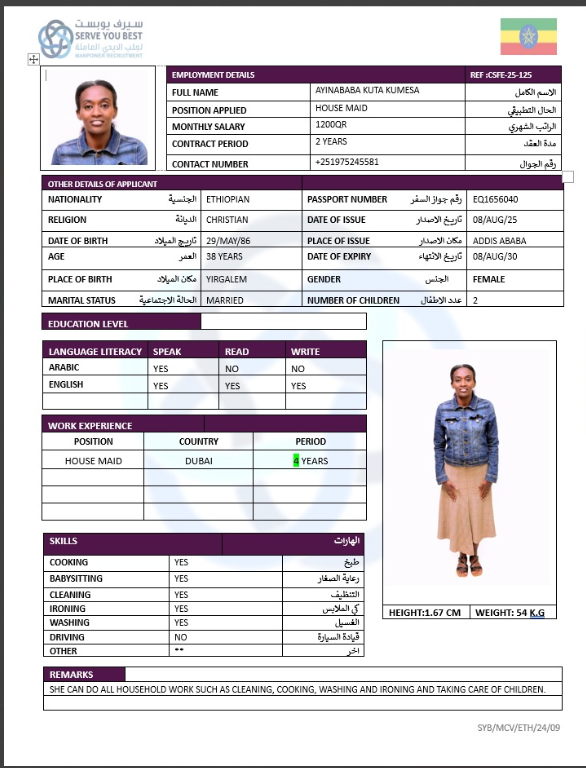 الجنسية أثيوبيا