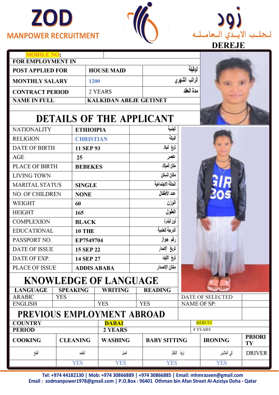 الاسم - عربي KALKIDAN ABEJE GETINET