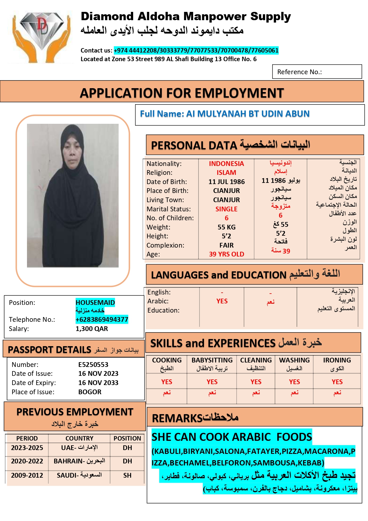 الاسم - عربي AI MULYANAH BT UDIN ABUN