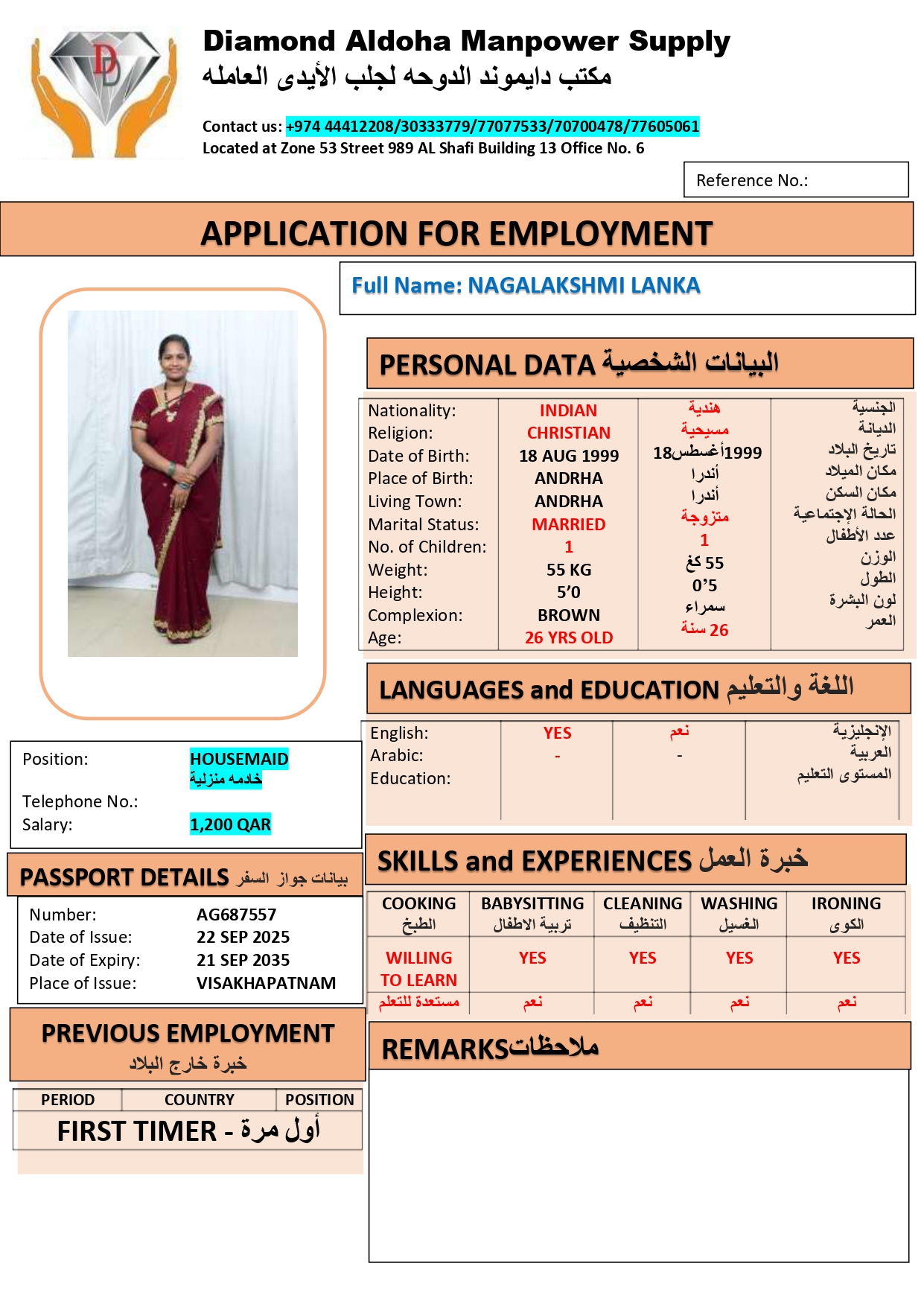 الاسم - عربي NAGALAKSHMI LANKA VENKATRAO TATAPUDI