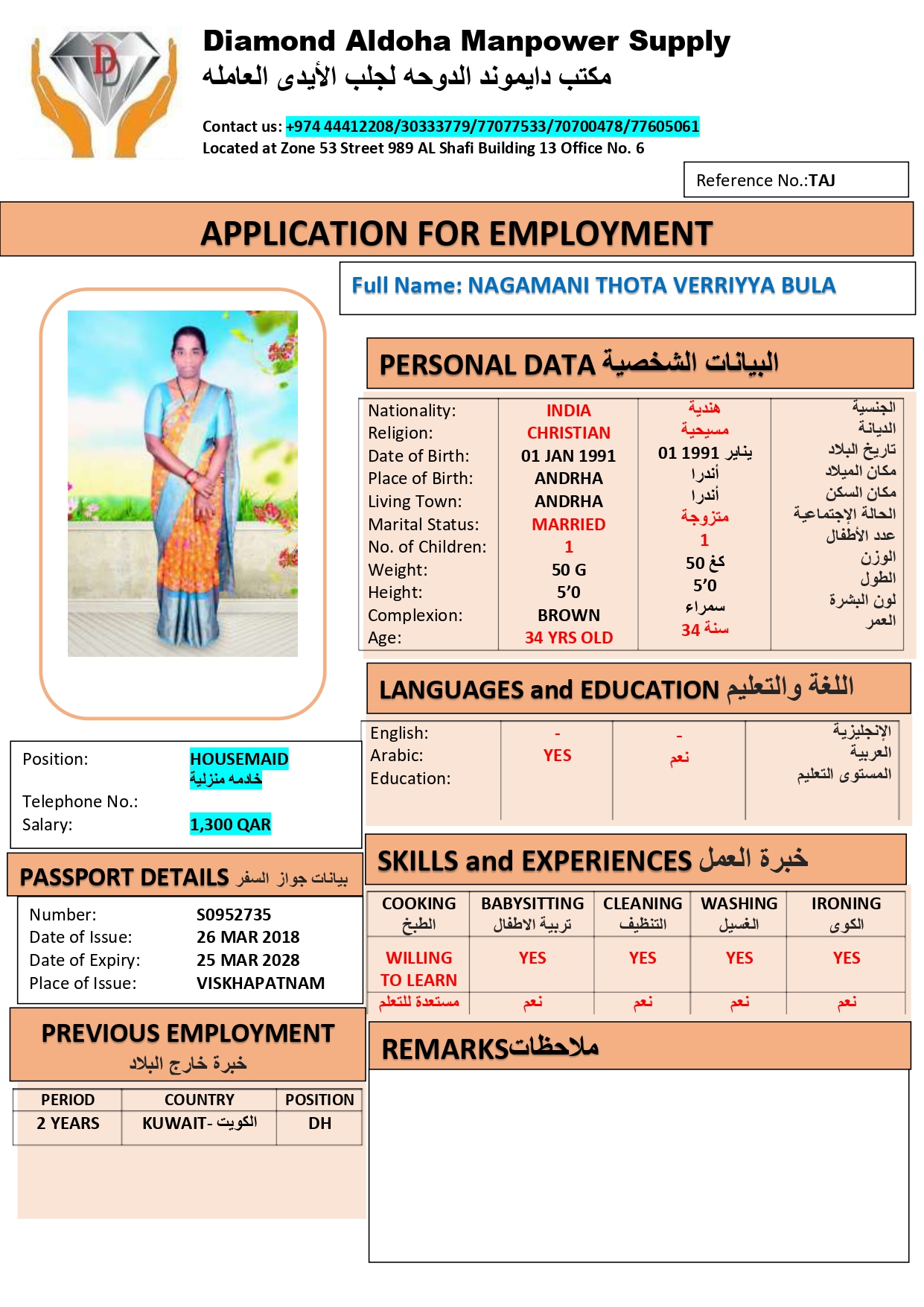الاسم - عربي NAGAMANI THOTA VERRIYYA BULA