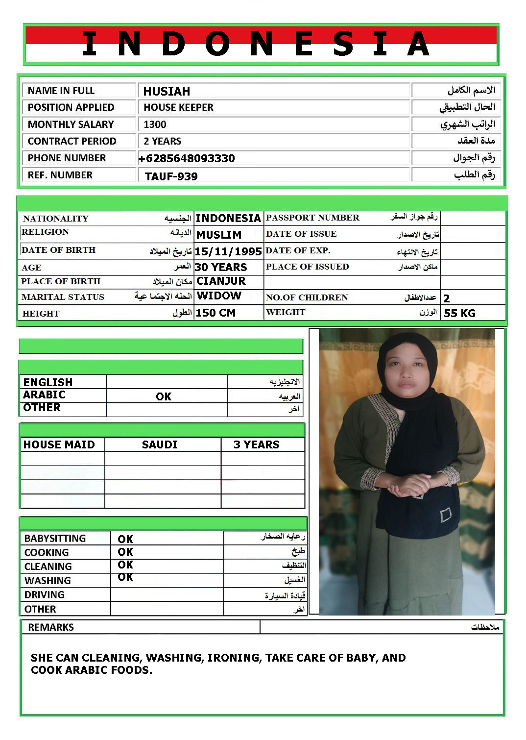 المهنة عاملة منزلية