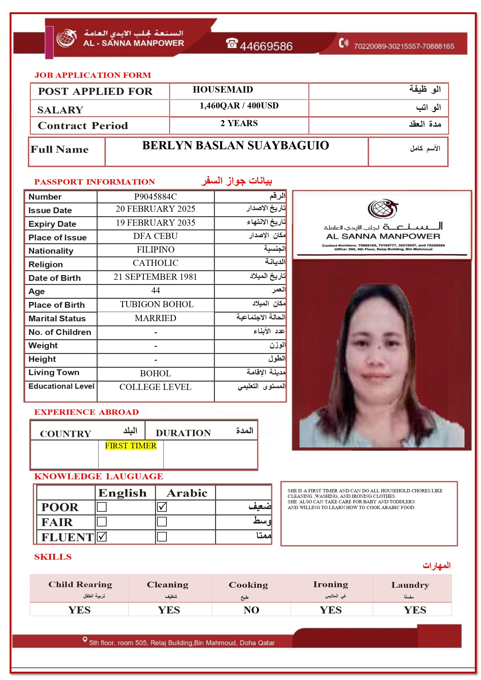 الاسم - عربي BERLYN BASLAN SUAYBAGUIO