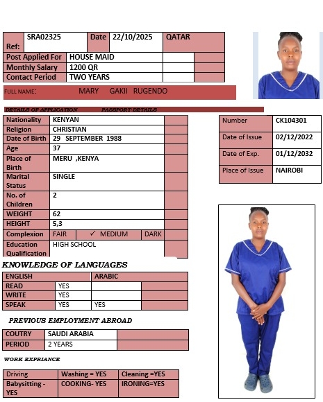 SHE CAN CIEANING, IRONING, WASHING, BABYSITTING, ALSO SHE CAN COOKING