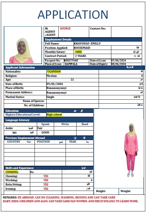 SHE CAN CIEANING, IRONING, WASHING, BABYSITTING,