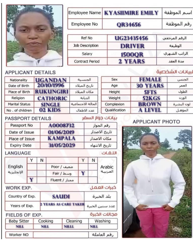 الاسم - عربي KYASIIMIRE EMILY