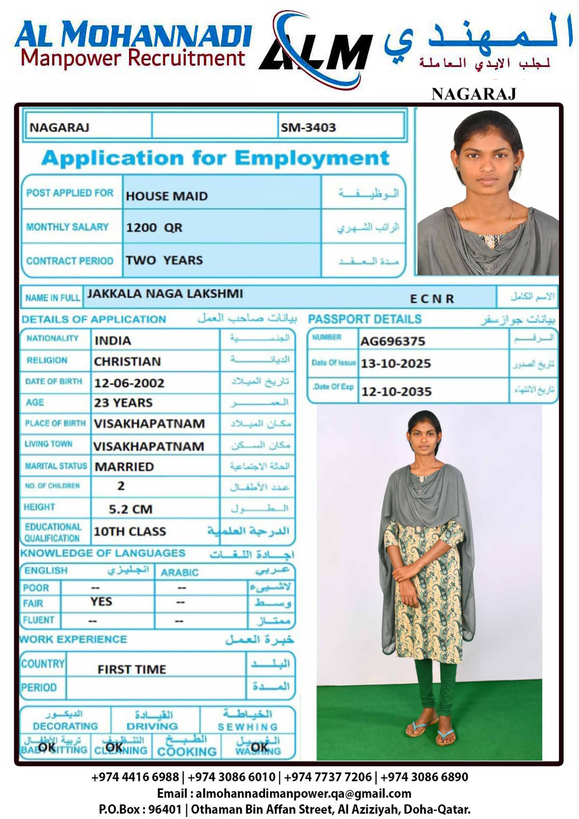الاسم - عربي JAKKALA NAGA LAKSHMI