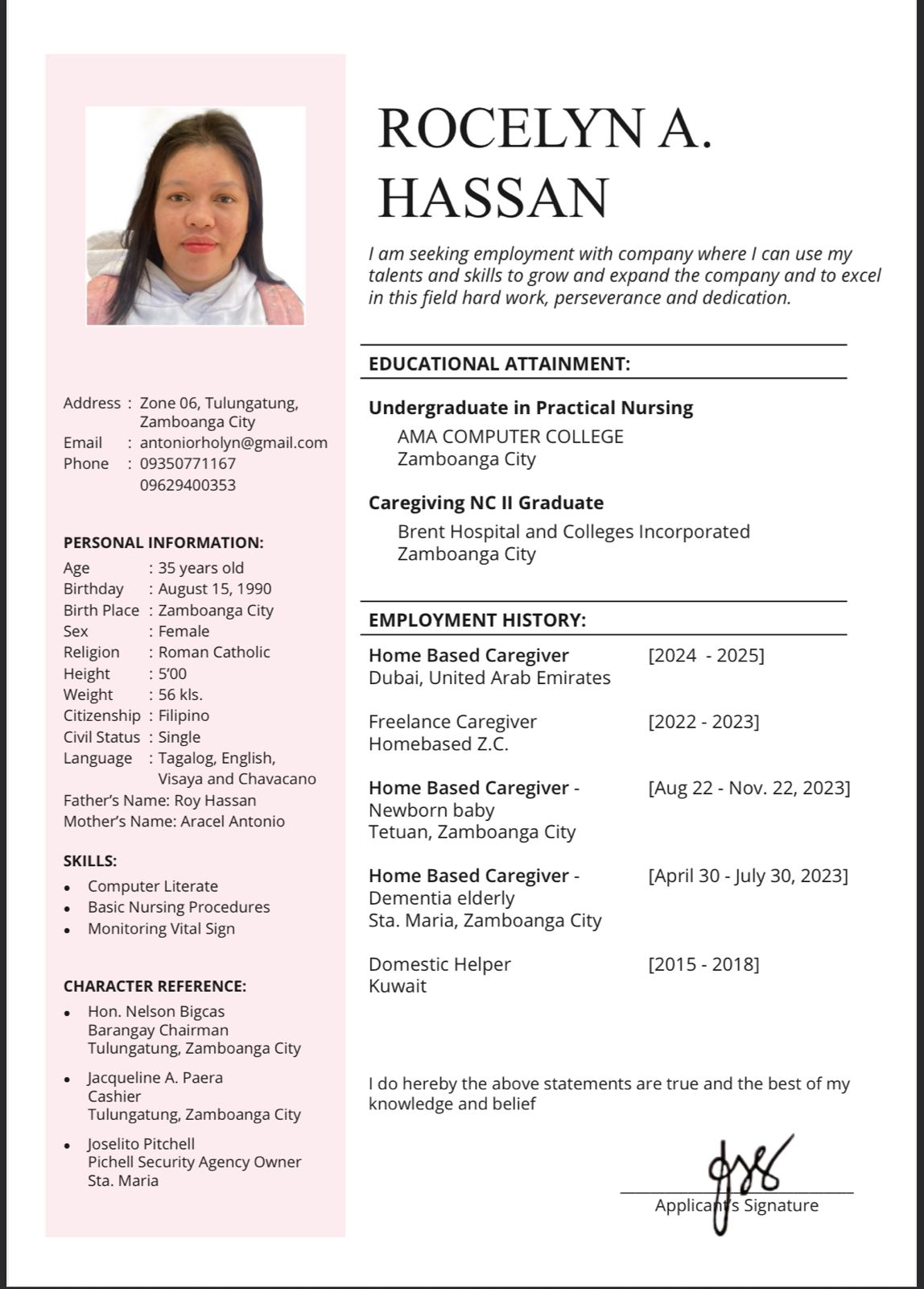 الاسم - عربي ROCELYN ANTONIO HASSAN