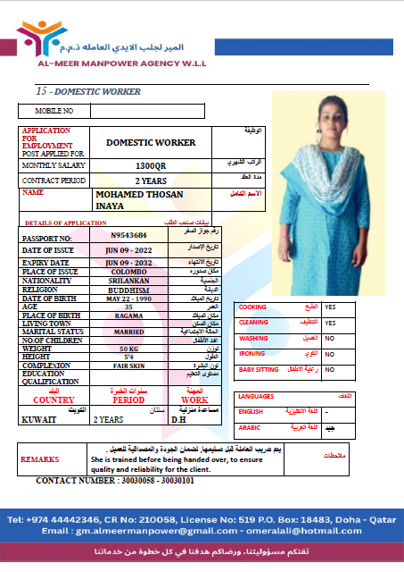المهنة عاملة منزلية