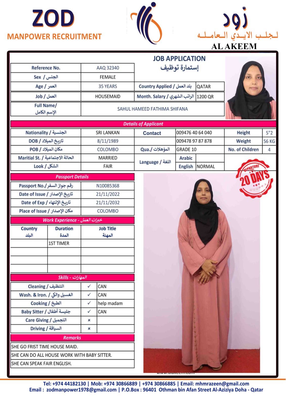 الاسم - عربي SAHUL HAMEED FATHIMA SHIFANA