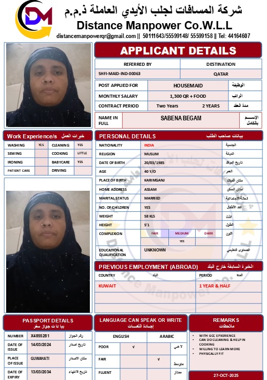 الشركة ‏ المسافات لجلب الايدي العاملة H