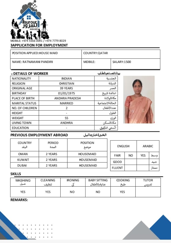 الاسم - عربي RATNAMANI PANDIRI
