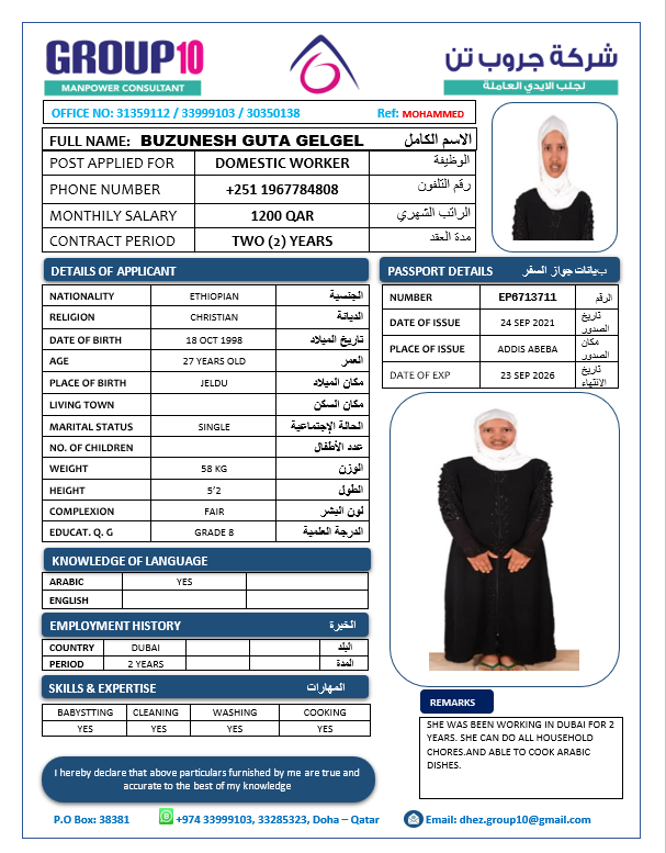 الاسم - عربي BUZUNESH GUTA GELGEL
