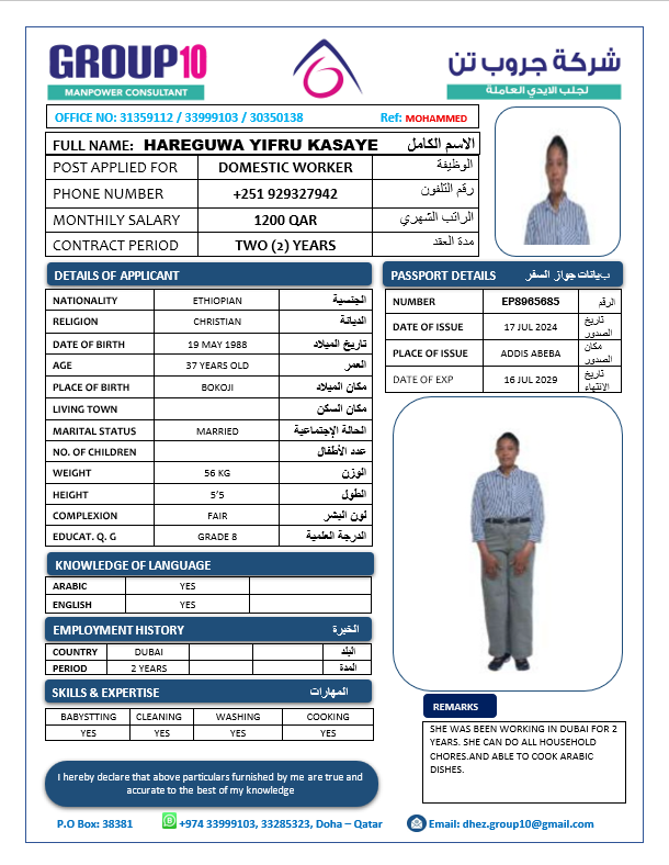 الاسم - عربي HAREGUWA YIFRU KASAYE
