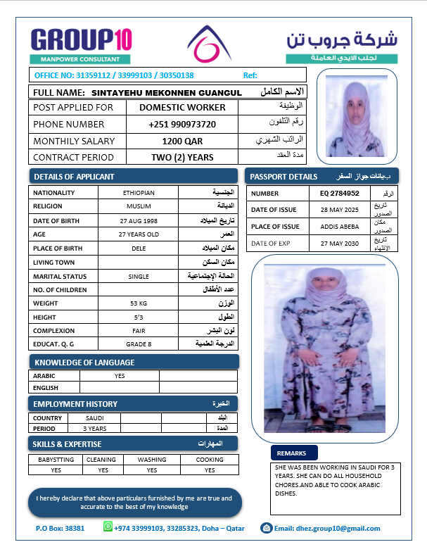 الاسم - عربي SINTAYEHU MEKONNEN GUANGUL