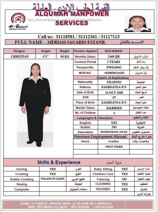 الاسم - عربي MERIAM SAGARIO ESTANIL