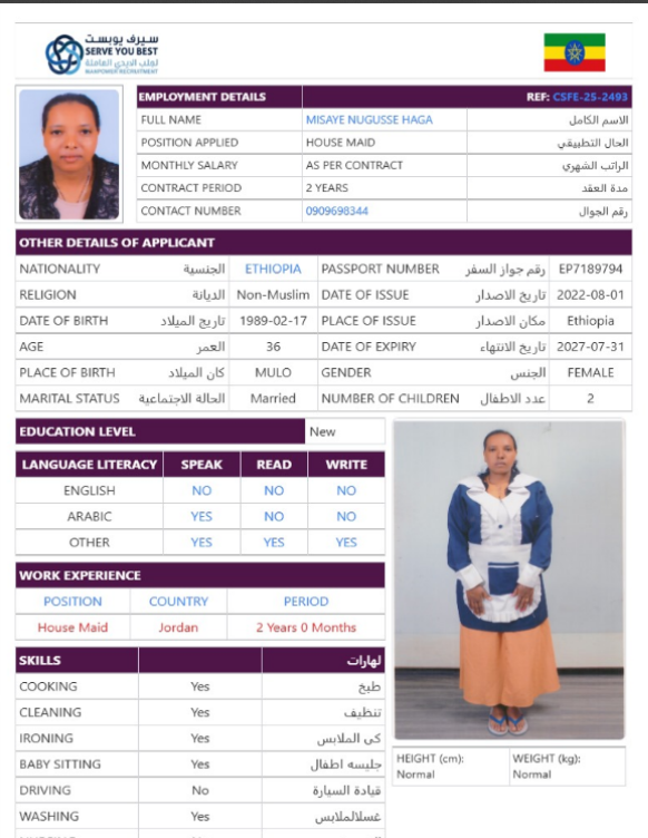 الاسم - عربي MISAYE NUGUSSEE HAGA