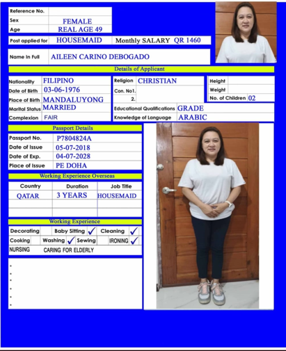 الاسم - عربي AILEEN CARINO DEBOLGADO
