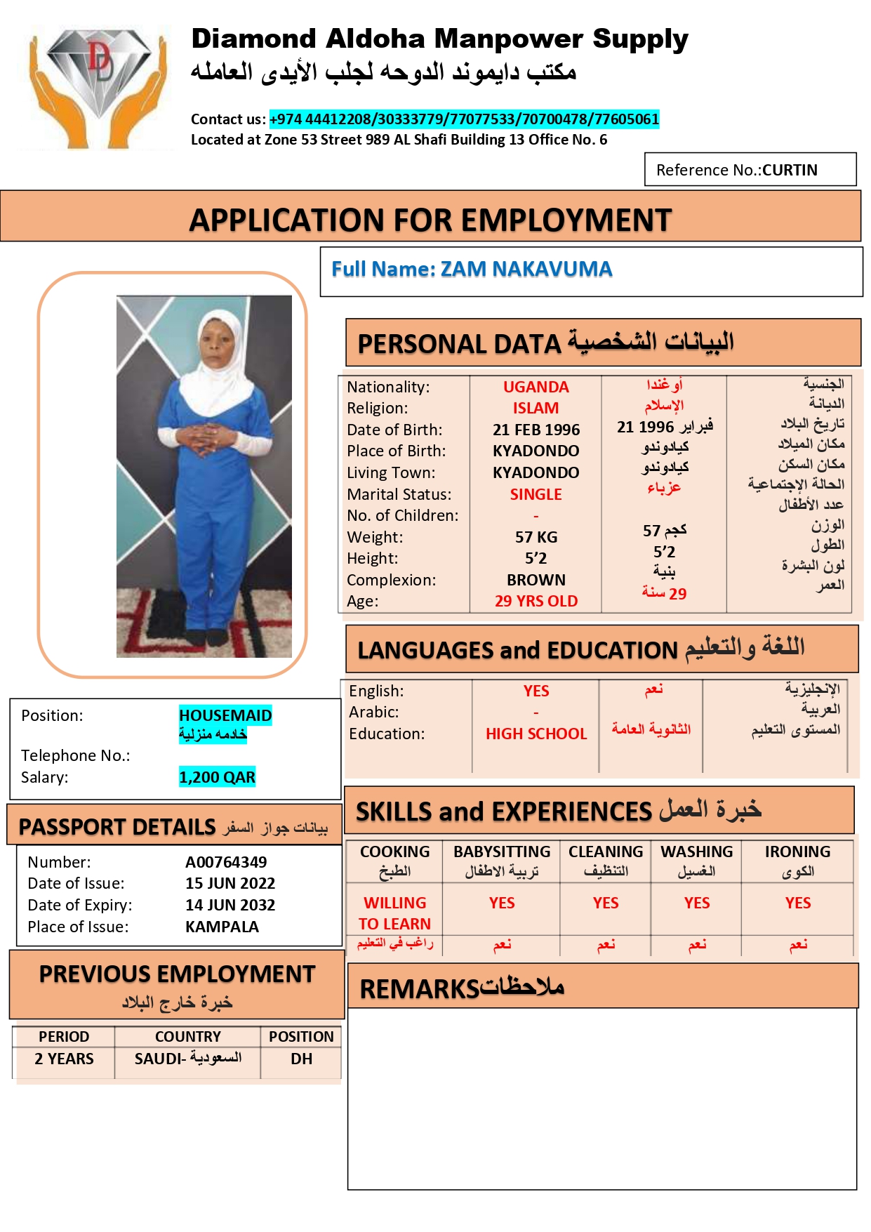 الشركة ‏ دايموند الدوحة لجلب الايدى العاملة