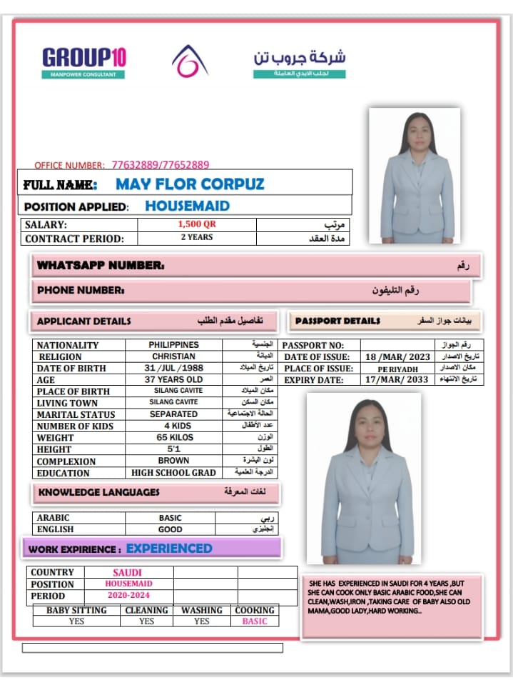 الاسم - عربي MAY FLOR CORPUZ /PHIL HOUSEMAID