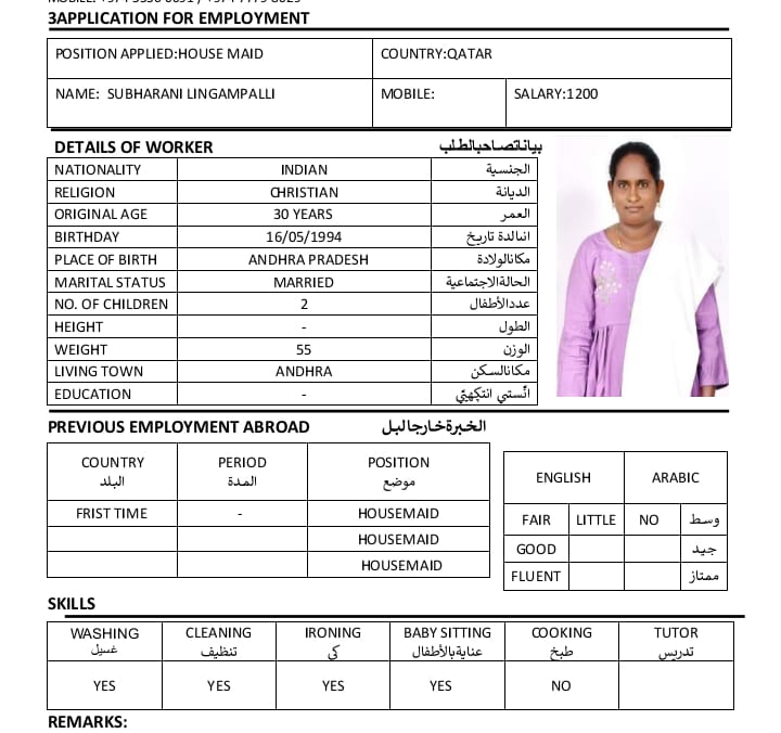 المهنة عاملة منزلية