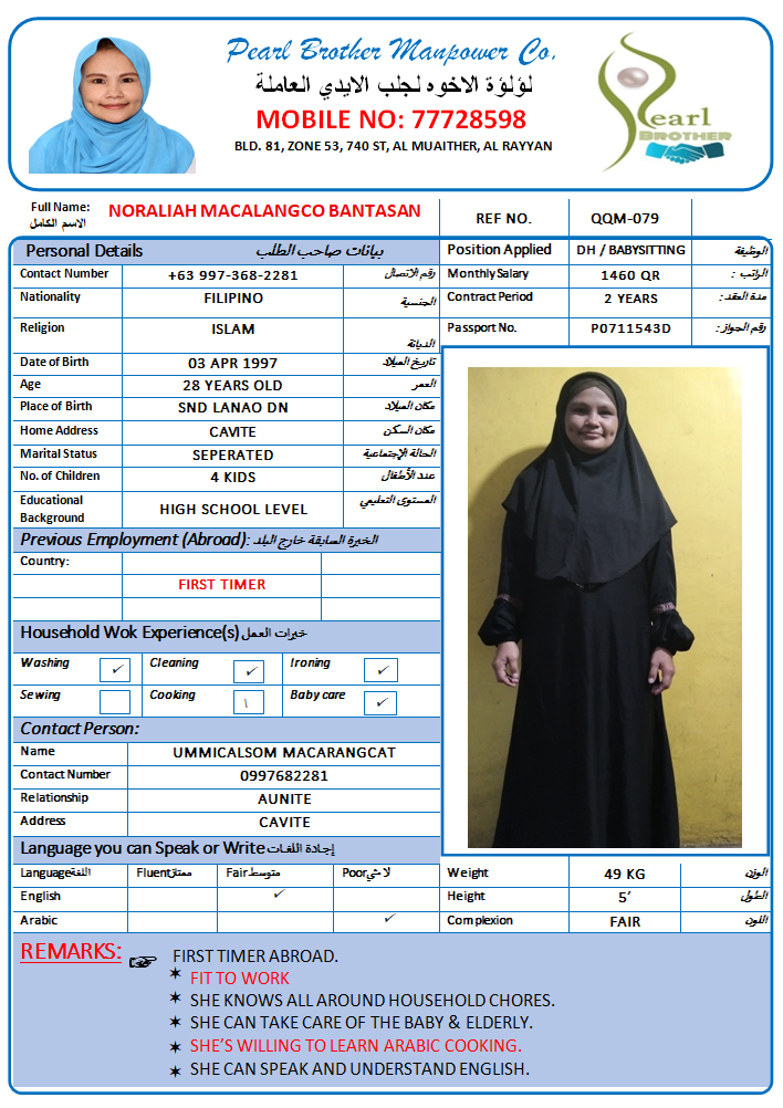 الاسم - عربي NORALIAH MACALANGCO BANTASAN