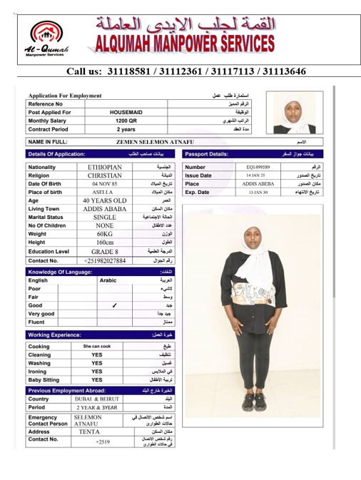 الاسم - عربي ZEMEN SELEMON ATNAFU