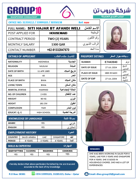 الاسم - عربي SITI HAJAR BT AFANDI WELI