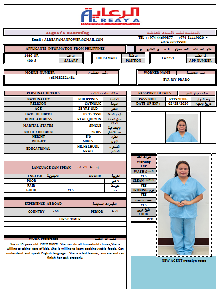 | الاسم - عربي | EVA JOY PRADO |