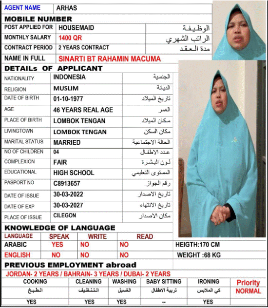 الاسم - عربي Sinarti Bt Rahamin Macuma