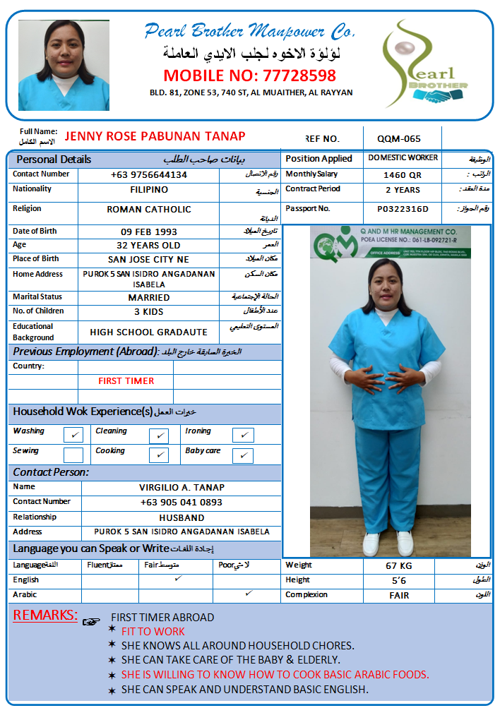 الاسم - عربي JENNY ANN ZAPANTA DABLO