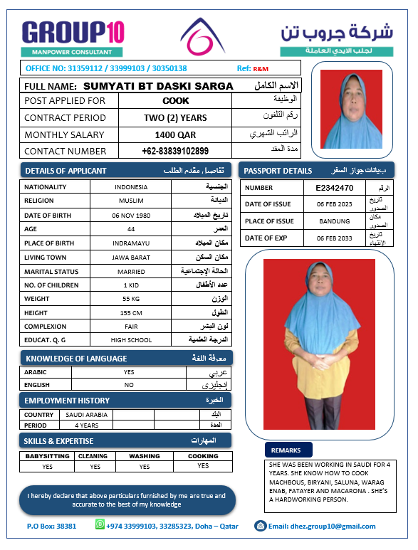 الاسم - عربي SUMYATI BT DASKI SARGA