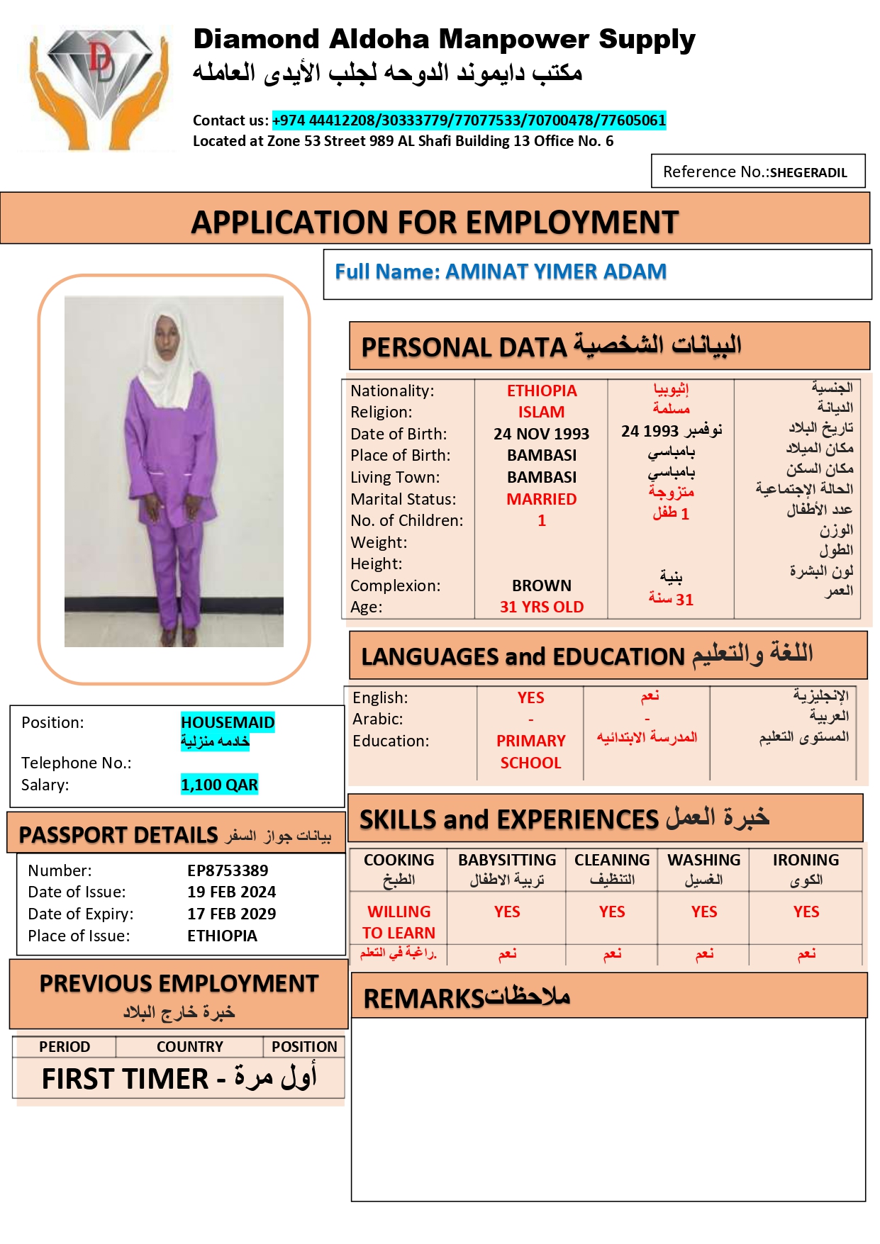 الشركة ‏ دايموند الدوحة لجلب الايدى العاملة