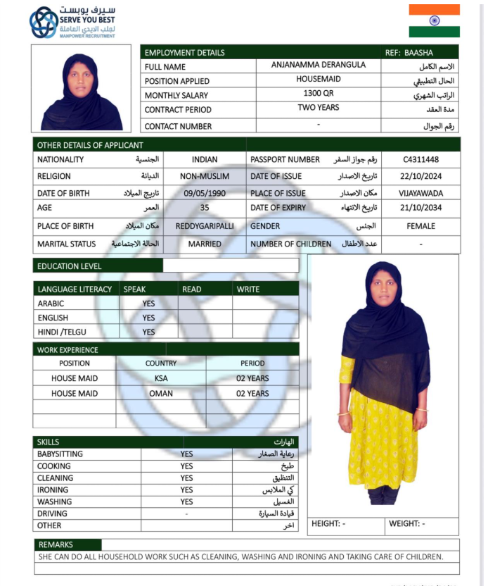 المهنة عاملة منزلية