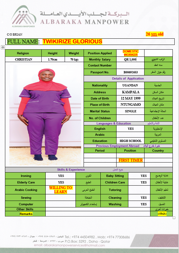 الاسم - عربي GLORIOUS TWIKIRIZE