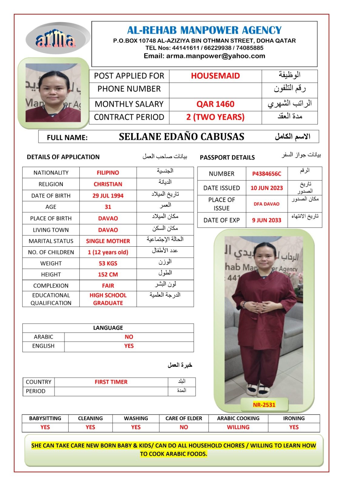 يمكنها رعاية الطفل والأطفال / يمكنها القيام بجميع الأعمال المنزلية