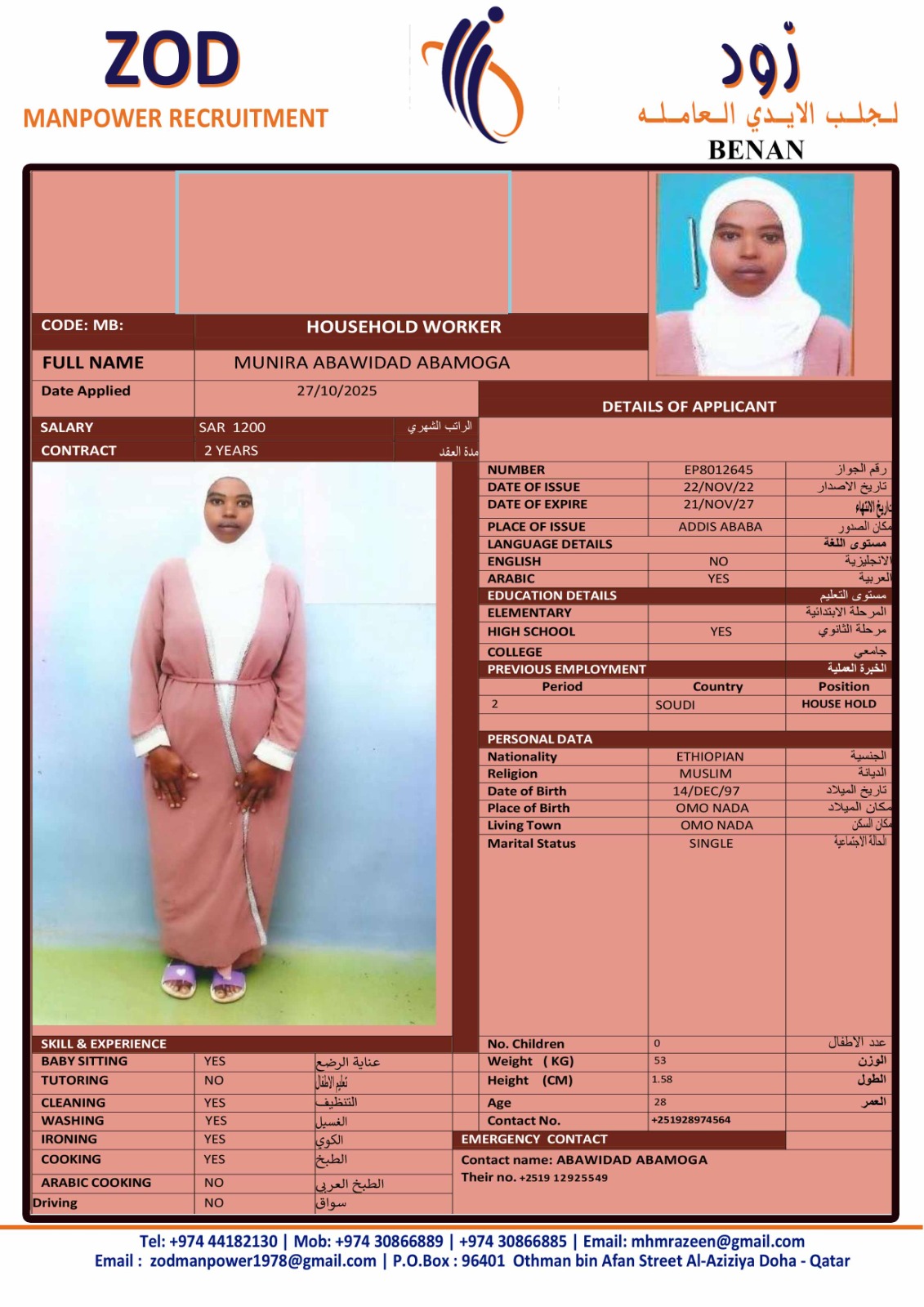 الاسم - عربي MUNIRA ABAWIDAD ABAMOGA