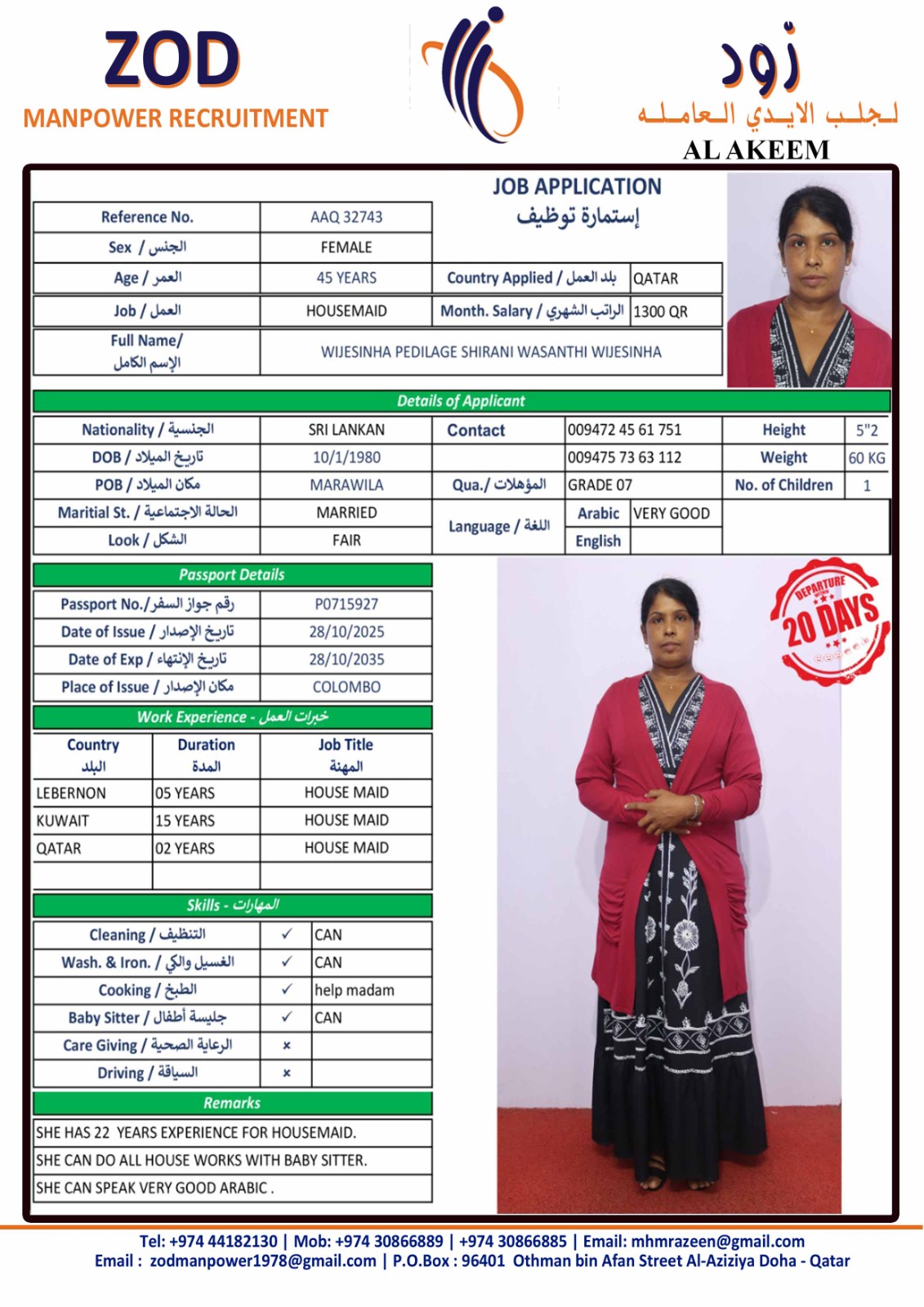 الاسم - عربي WJESINHA PEDILAGE SHIRANI WASANTHI WIJESINHA