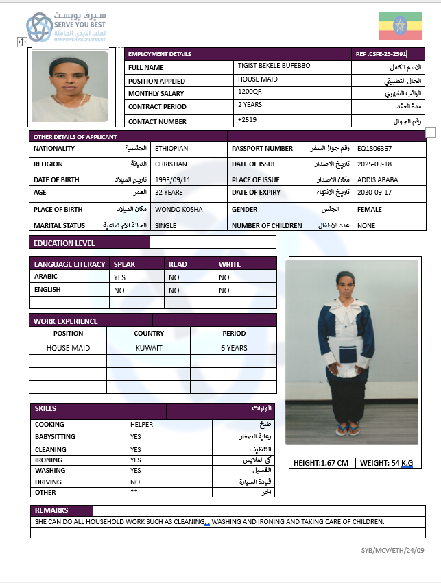 الاسم - عربي TIGIST BEKELE BUFEBBO