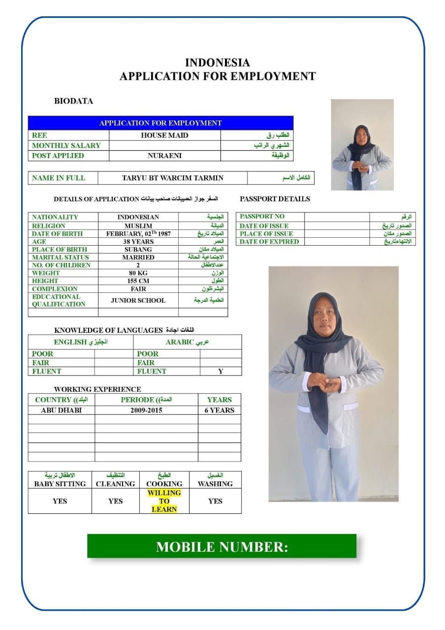 الاسم - عربي TARYU BT WARCIM TARMIN