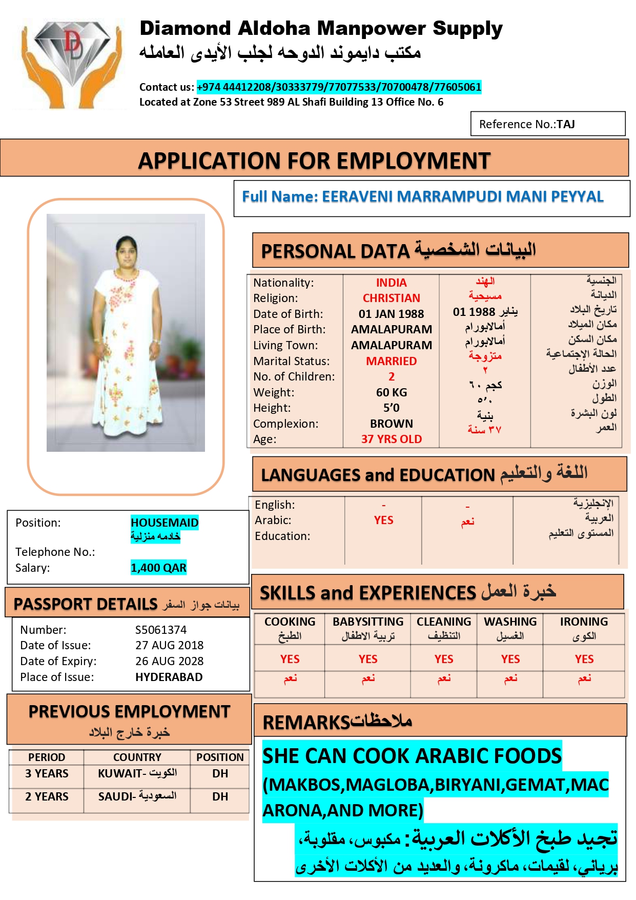 الاسم - عربي EERAVENI MARRAMPUDI MANI PEYYAL