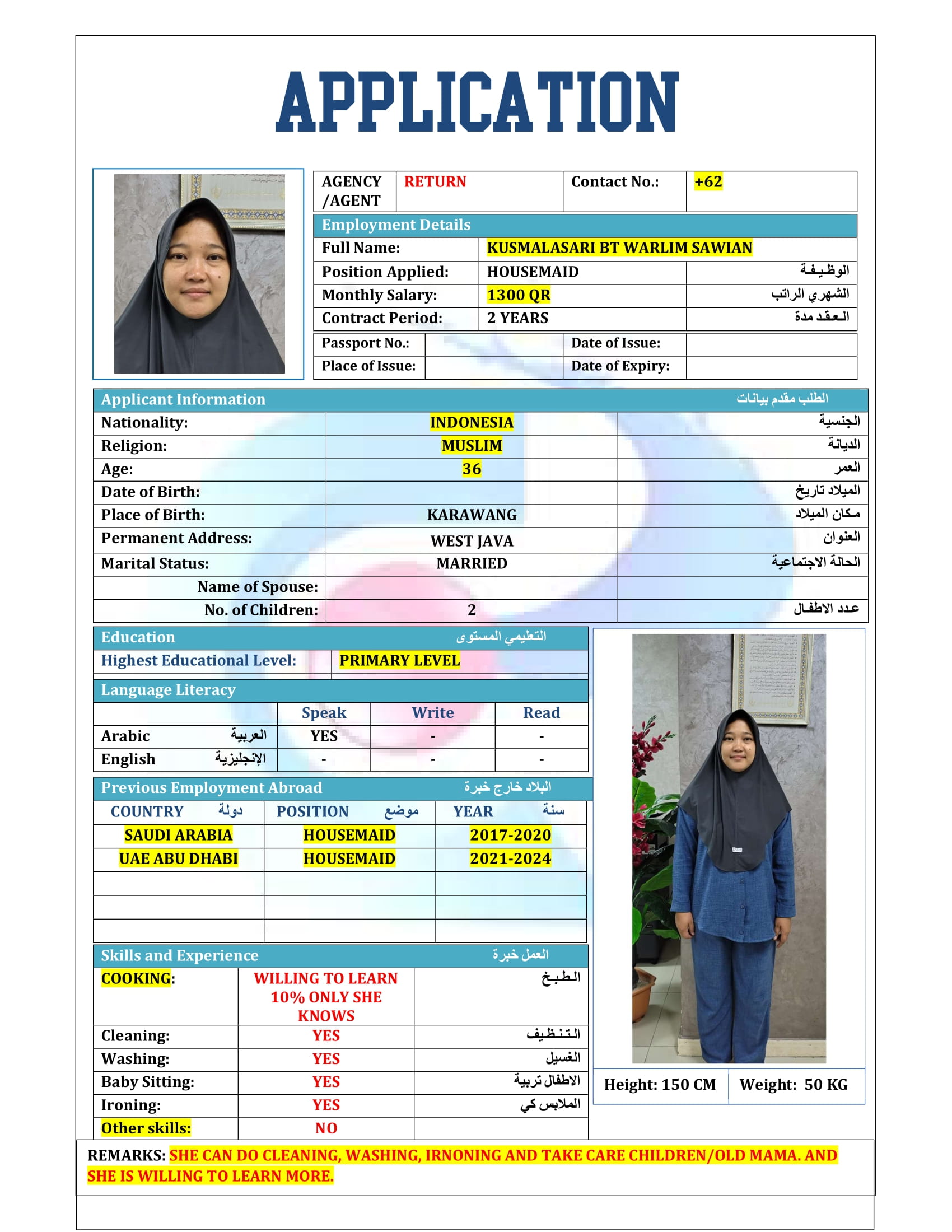 SHE CAN DO CLEANING, WASHING, IRONING & TAKE CARE KIDS