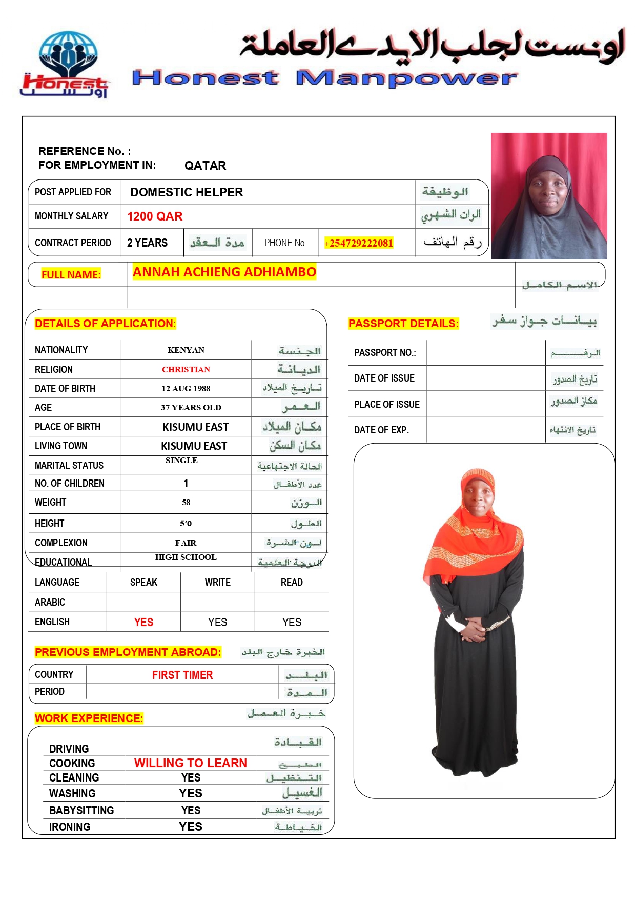 الاسم - عربي ANNAH ACHIENG ADHIAMBO