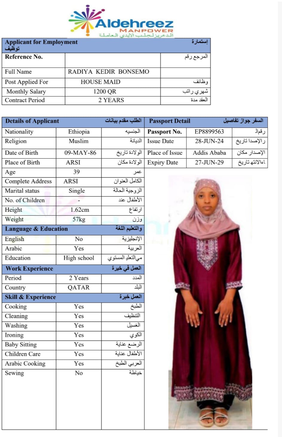 الاسم - عربي RADIYA KEDIR BONSEMO