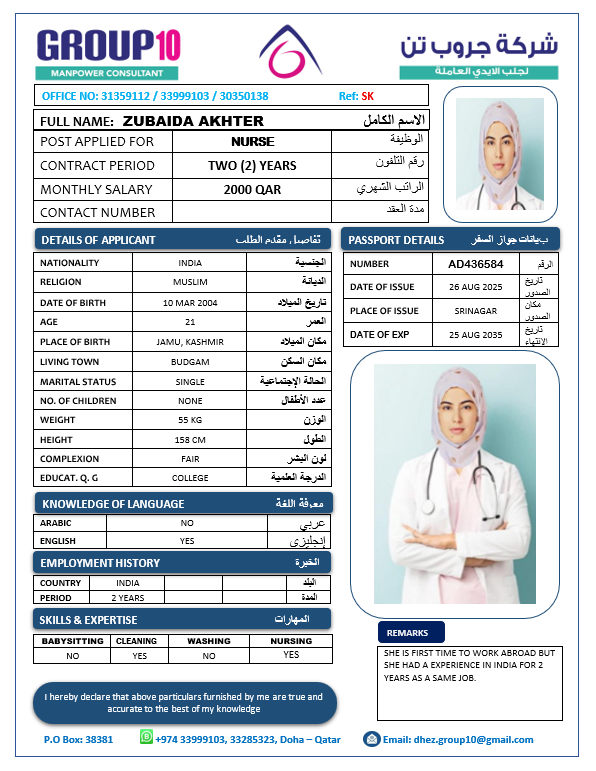الاسم - عربي ZUBAIDA AKHTER