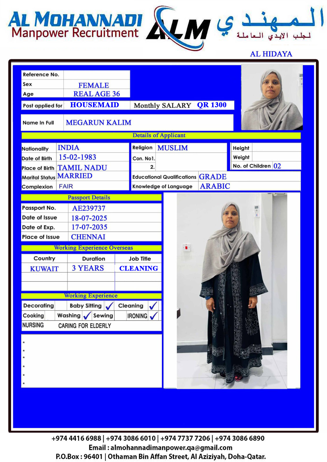البريد الإلكتروني almohannadimanpower.qa@gmail.com