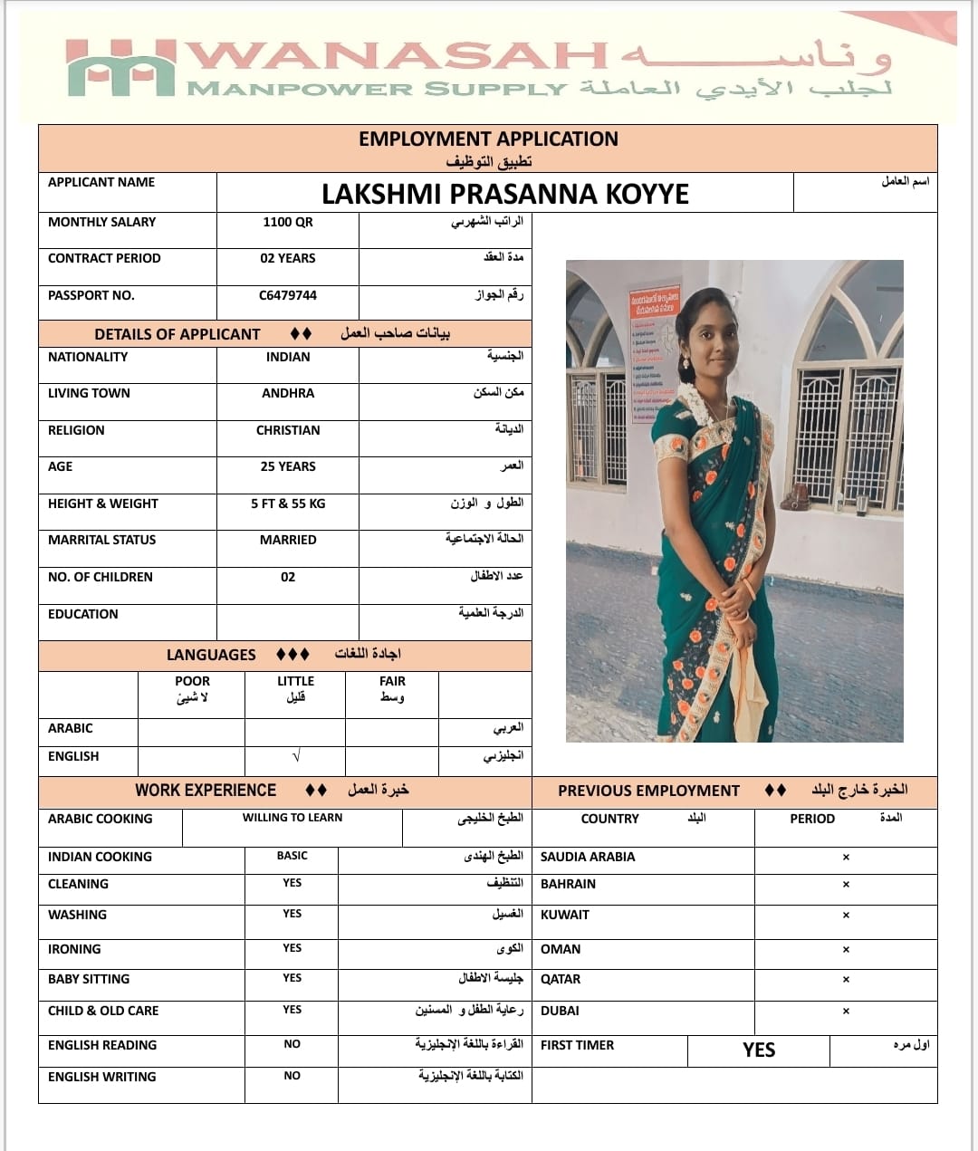 الاسم - عربي LAKSHMI PRASANNA KOYYE
